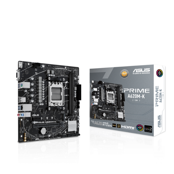 Placa madre micro-ATX lista para procesadores AMD Ryzen™ con socket AM5. Compatible con memoria DDR5, ranura PCIe 4.0 y almacenamiento M.2 NVMe, ofrece conectividad completa y rendimiento estable para PC de uso diario, gaming y productividad. Incluye puertos USB 3.2, HDMI, Realtek Gigabit LAN y soporte Aura Sync para iluminación RGB.