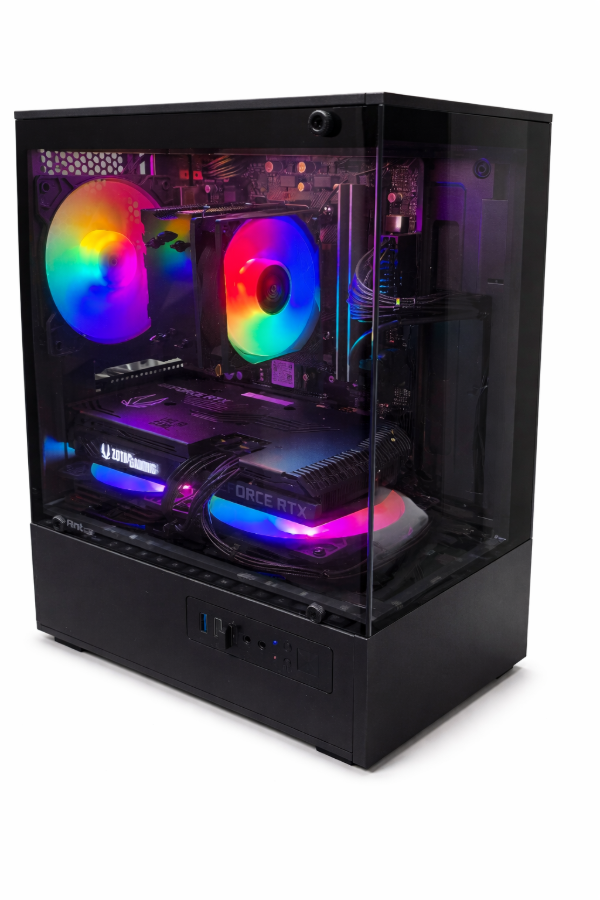 El sistema se completa con 16GB de memoria DDR4, almacenamiento NVMe M.2 de alta velocidad y un gabinete gamer con excelente flujo de aire.